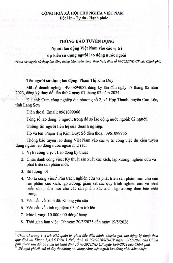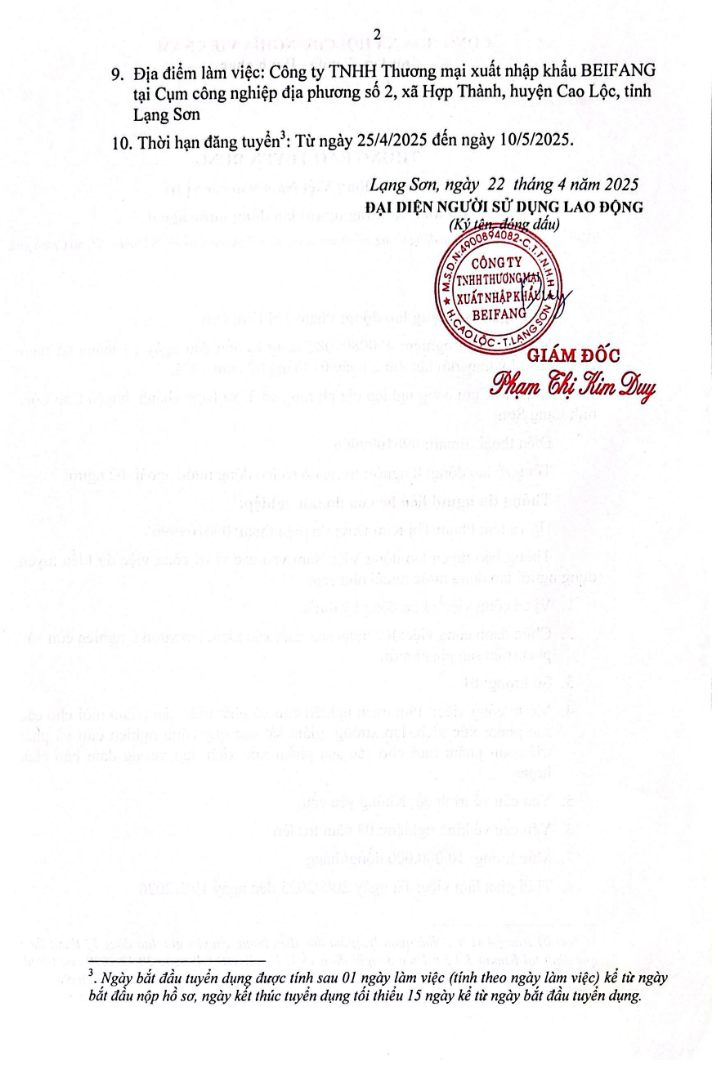Thông báo tuyển dụng – CÔNG TY TNHH THƯƠNG MẠI XNK BEIFANG