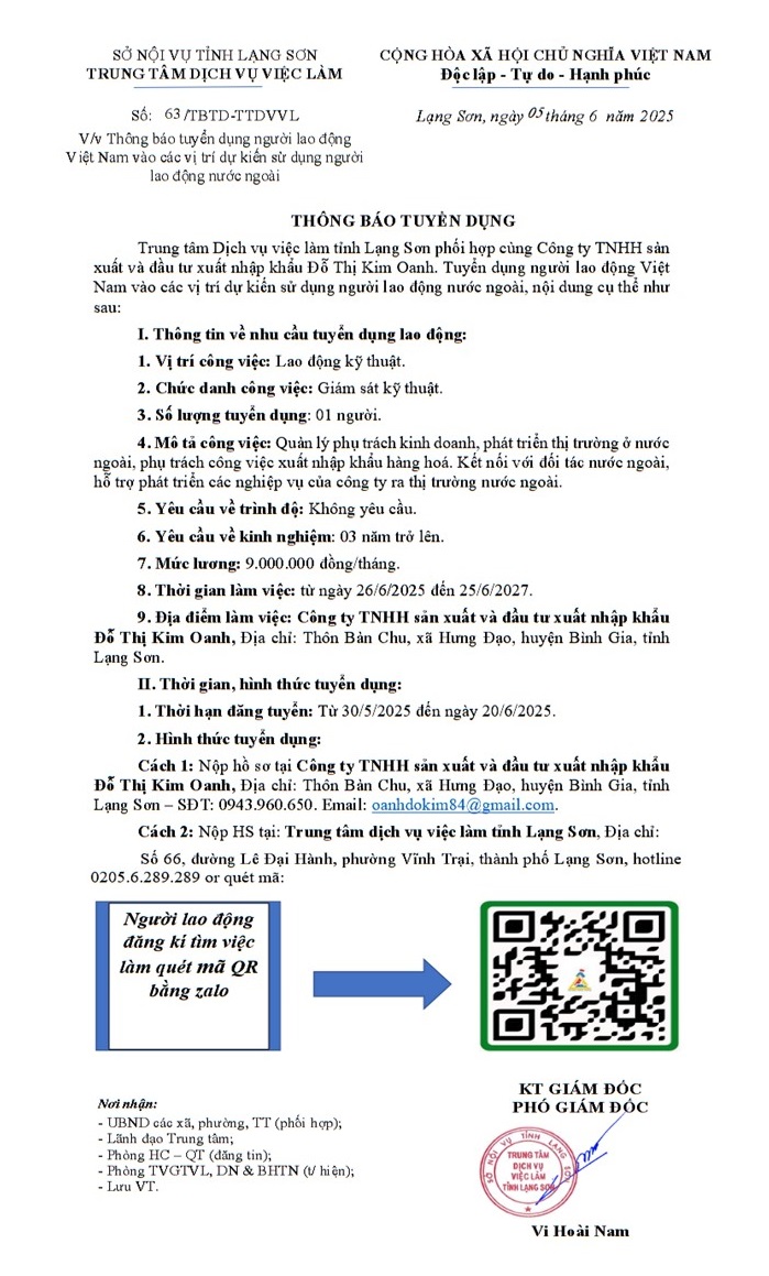 • Website: www.vieclamlangson.gov.vn