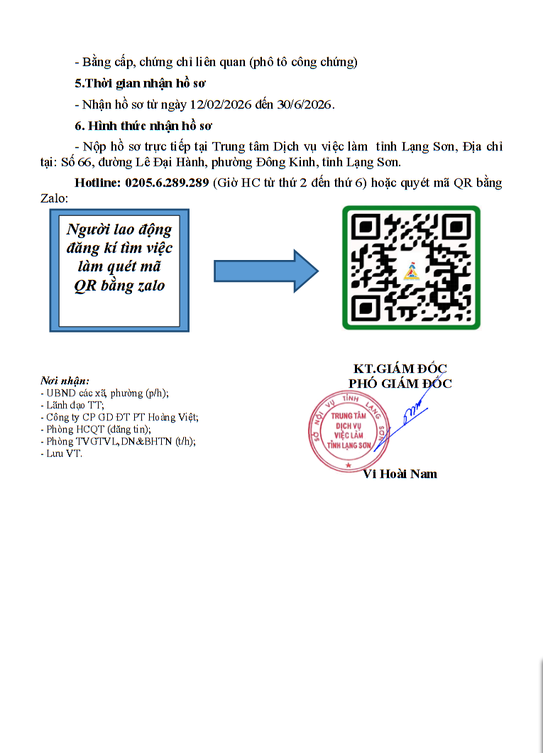 THÔNG BÁO Kế hoạch tuyển chọn lao động Quý I năm 2026 theo Chương trình EPS