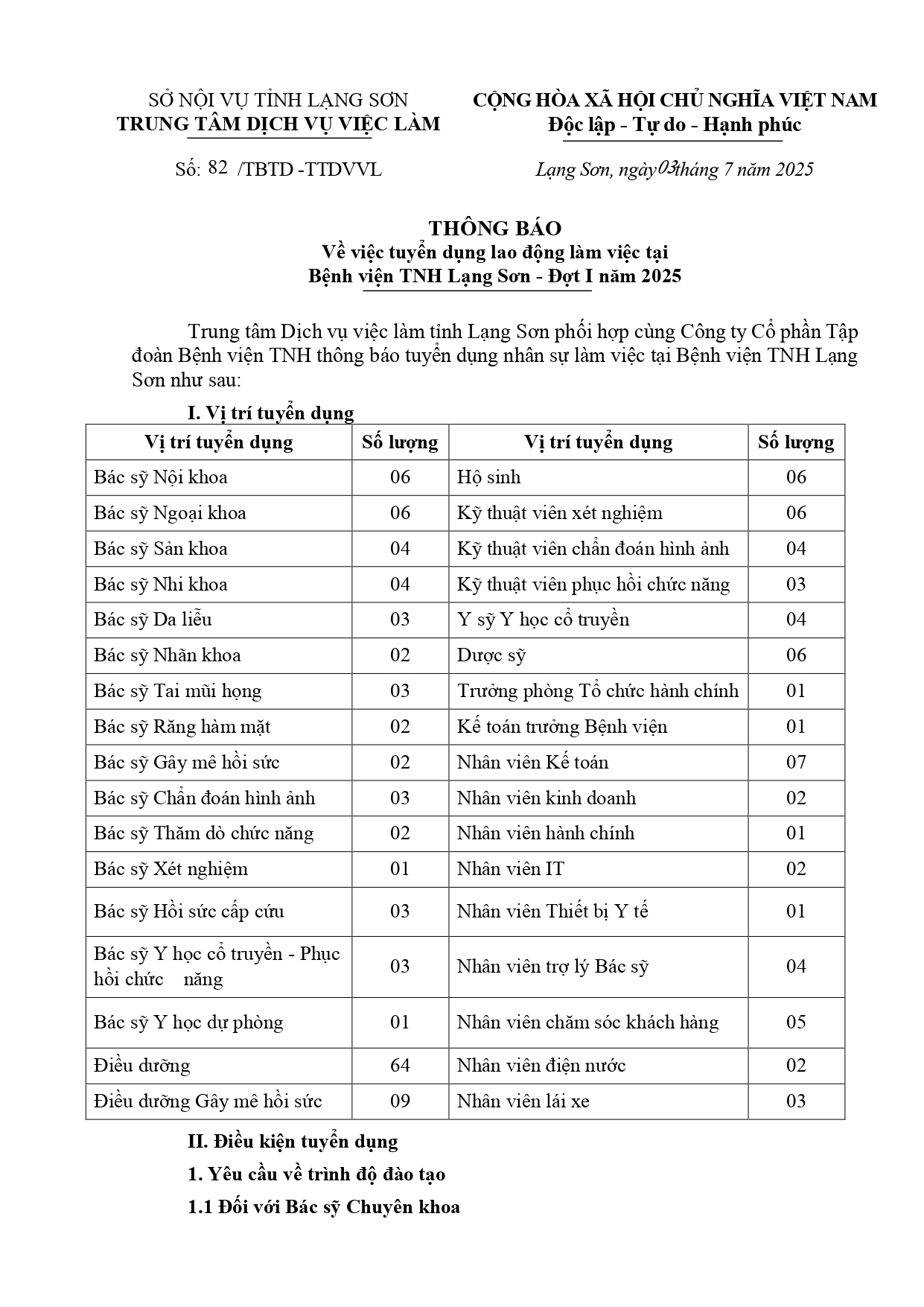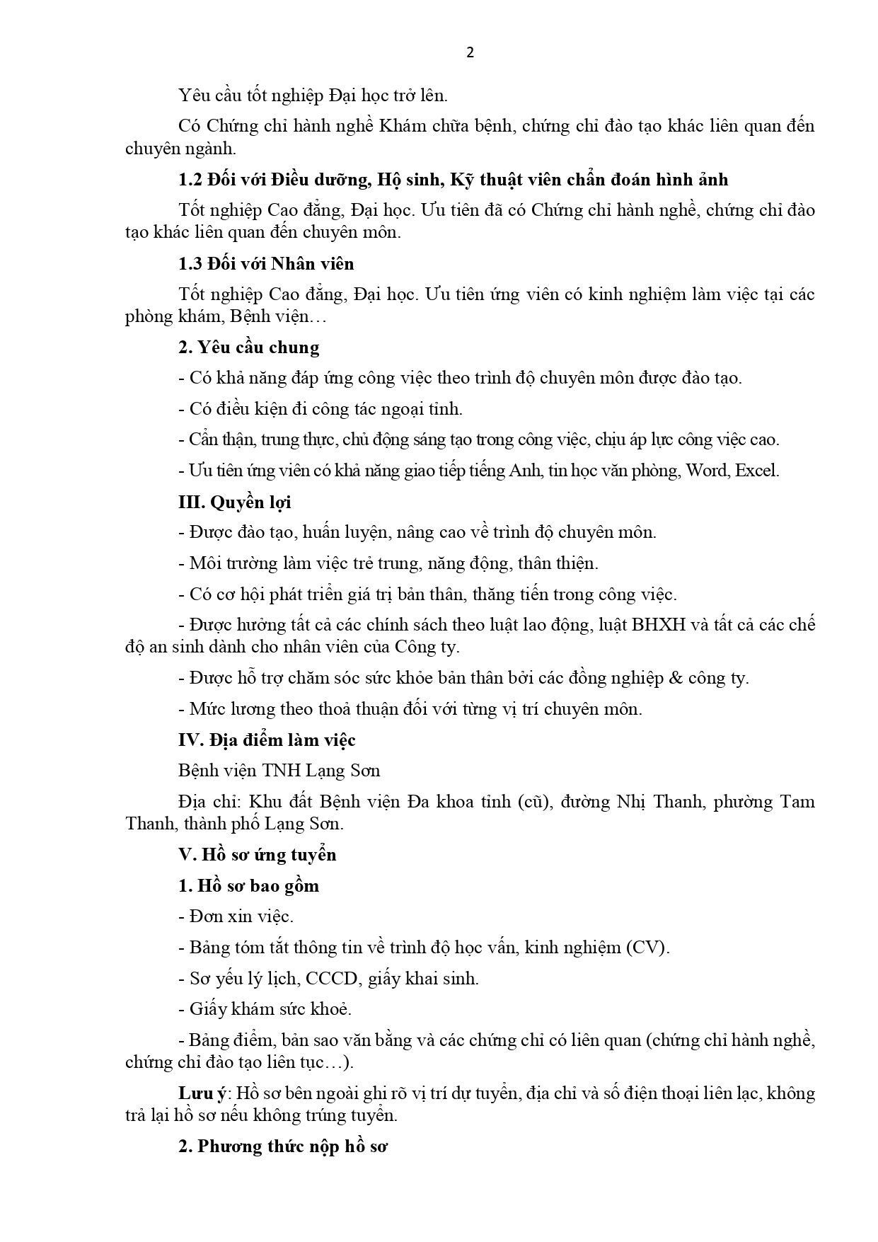 Bệnh viện TNH Lạng Sơn – Thông báo tuyển dụng