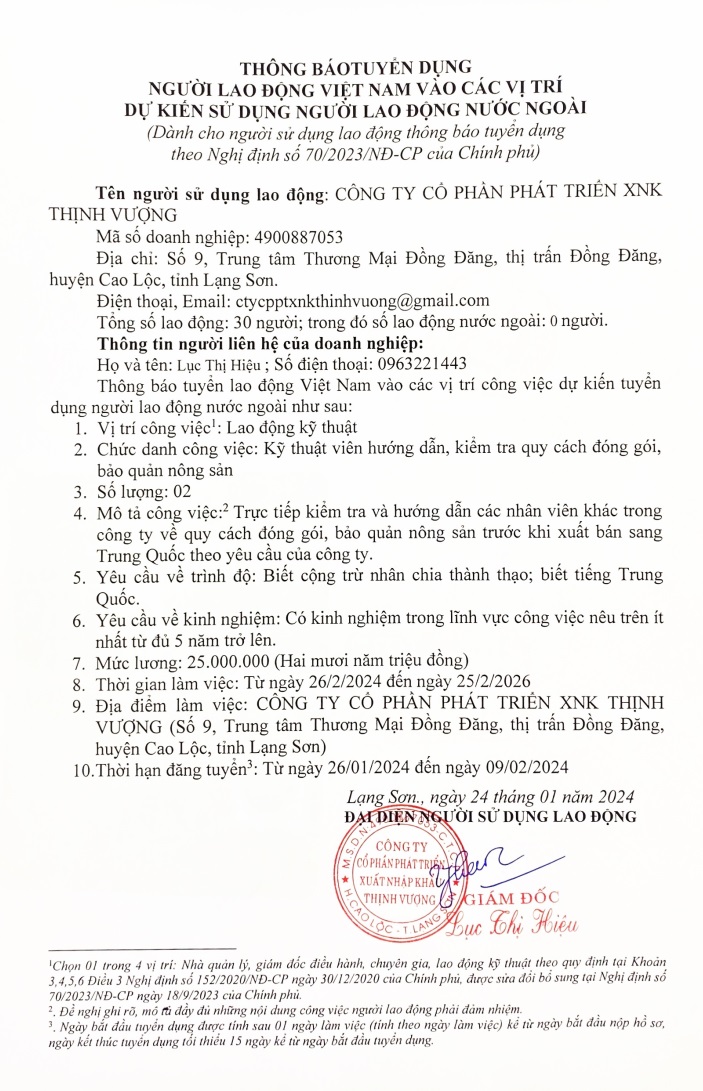 CÔNG TY CỔ PHẦN PHÁT TRIỂN XNK THỊNH VƯỢNG