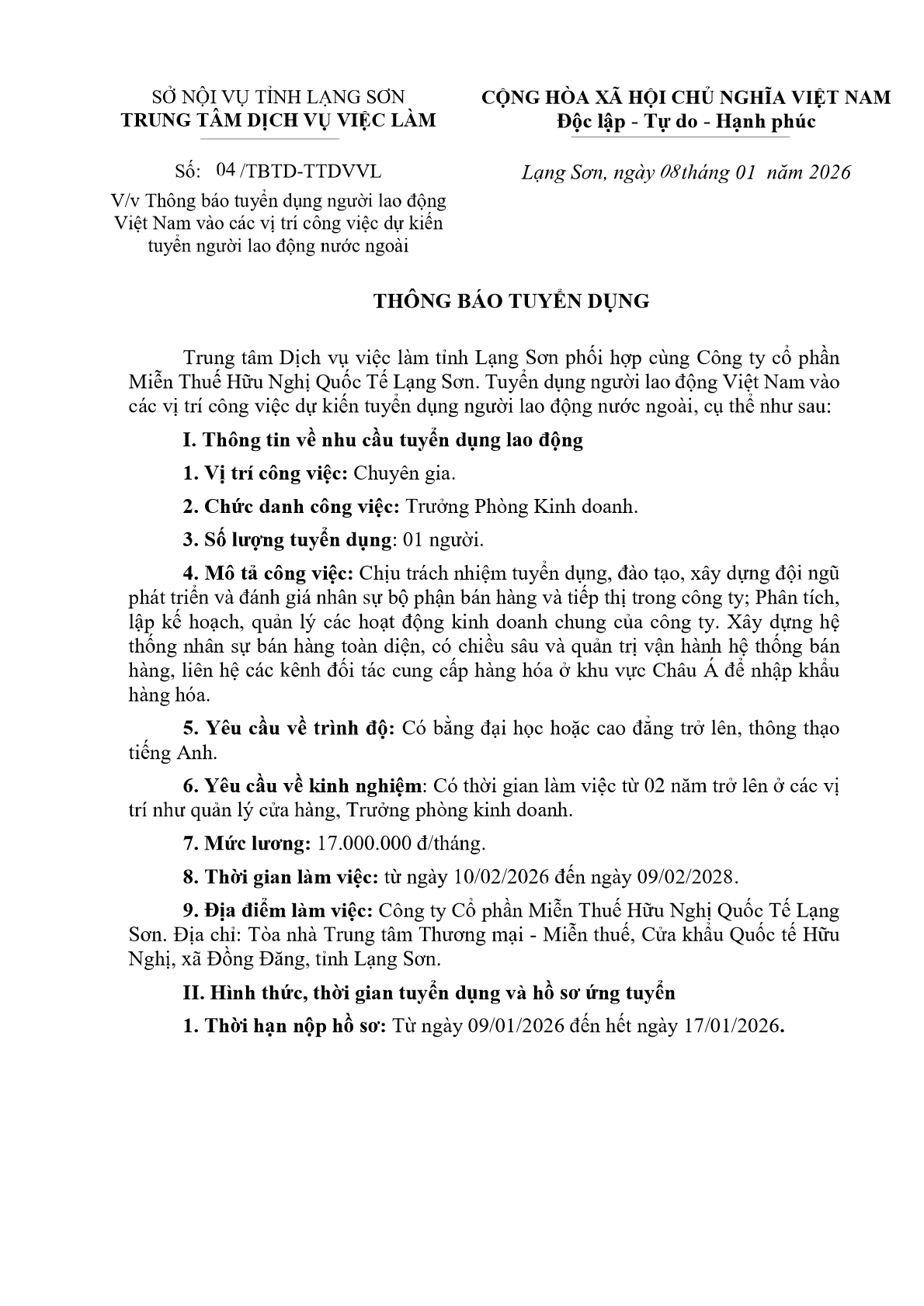 TRUNG TÂM DỊCH VỤ VIỆC LÀM TỈNH LẠNG SƠN