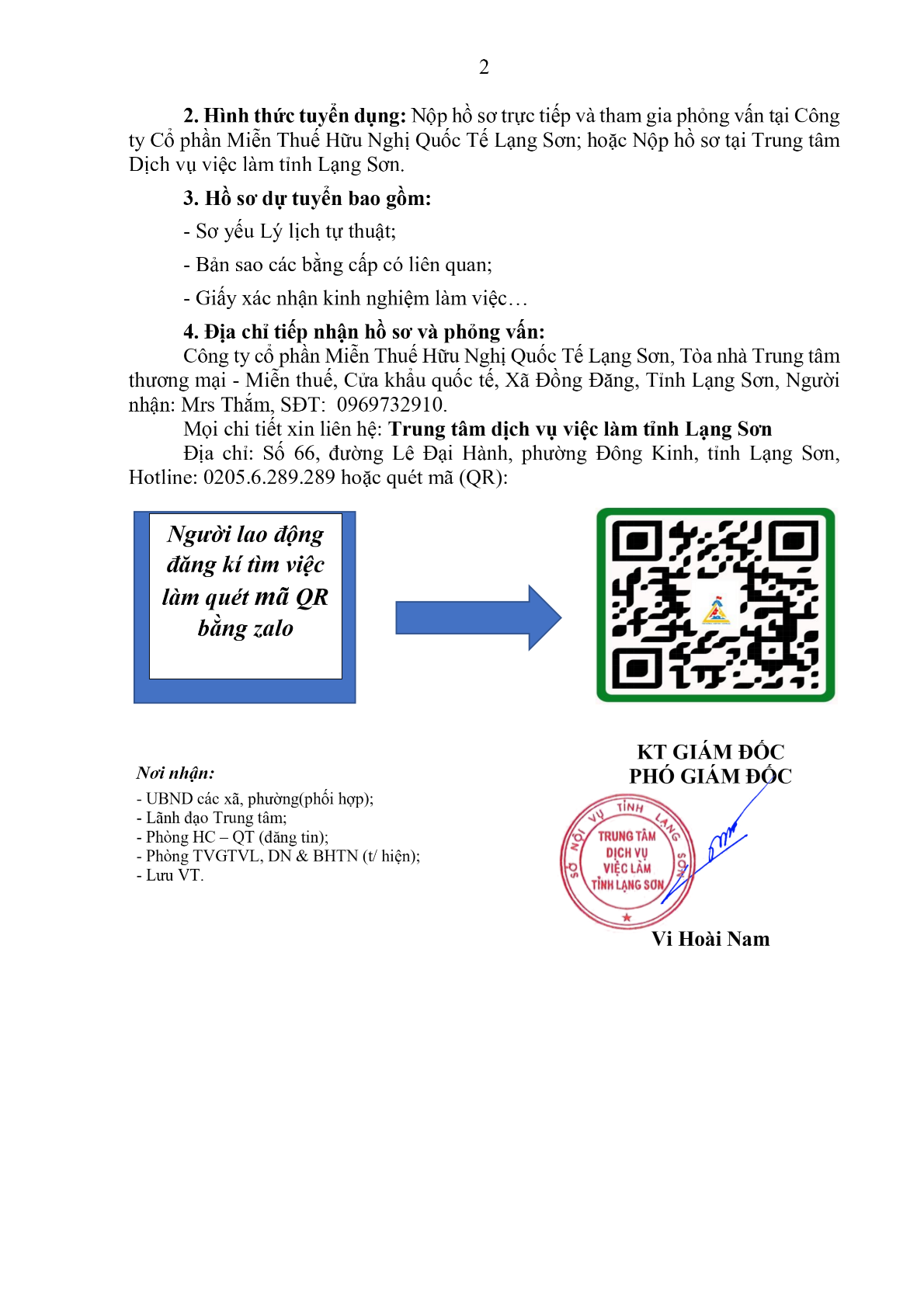 • Zalo Page: Trung tâm dịch vụ việc làm Lạng Sơn