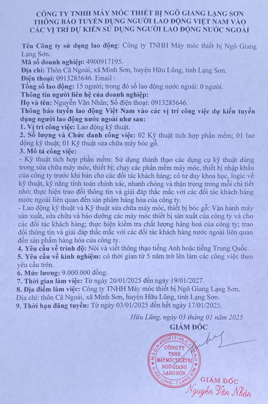 THÔNG BÁO TỔ CHỨC PHIÊN GIAO DỊCH VIỆC LÀM NĂM 2025 TẠI XÃ BÌNH GIA