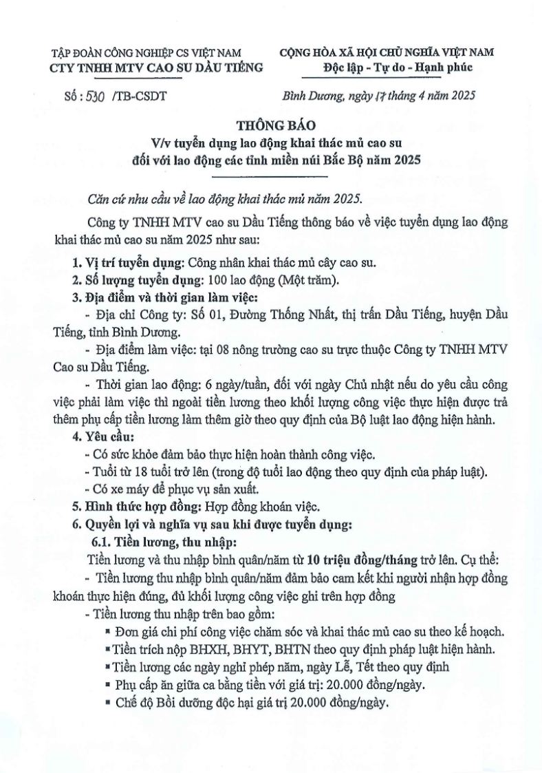 CÔNG TY TNHH MTV CAO SU DẦU TIẾNG (BÌNH DƯƠNG)