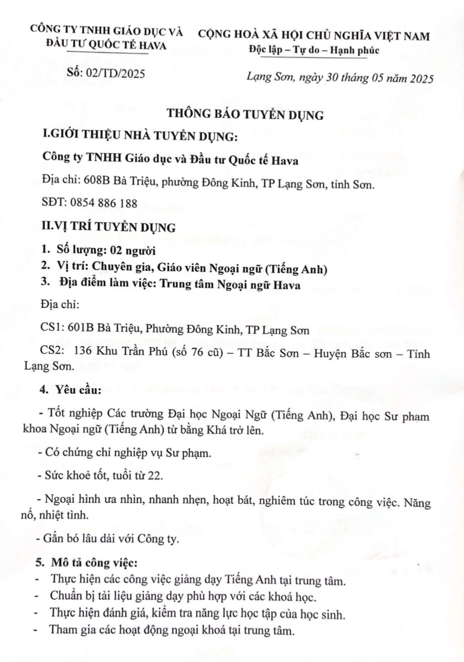 CÔNG TY TNHH GIÁO DỤC VÀ ĐẦU TƯ QUỐC TẾ HAVA
