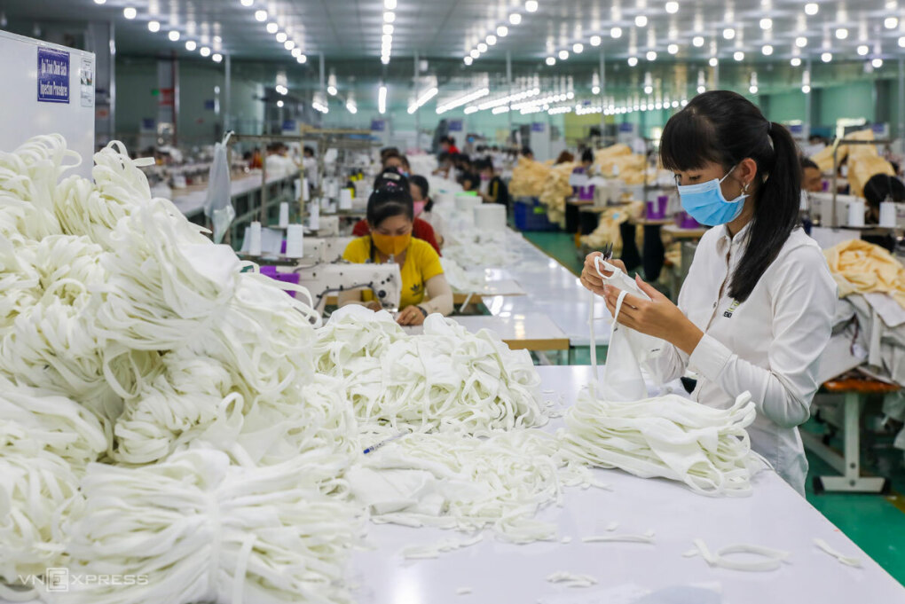 Công nhân ở Long An sản xuất khẩu trang vải mùa dịch. Ảnh: Như Quỳnh