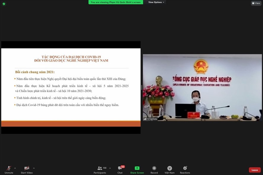 Tổng cục trưởng Tổng cục GDNNN cũng nói thêm, trong bối cảnh Việt Nam chưa kiểm soát được dịch bệnh và không thể dự báo được thời gian các cơ sở GDNN trở lại hoạt động bình thường. Trong năm qua, Chính phủ Việt Nam đã ban hành nhiều chính sách hỗ trợ giáo viên, học sinh, cơ sở GDNN và đào tạo, đào tạo lại cho người lao động để có thể thích ứng và chuyển đổi nghề nghiệp trong bối cảnh thế giới việc làm đang thay đổi cũng như hỗ trợ đào tạo duy trì việc làm cho người lao động, doanh nghiệp, người sử dụng lao động gặp khó khăn, phải thay đổi cơ cấu, công nghệ sản xuất.