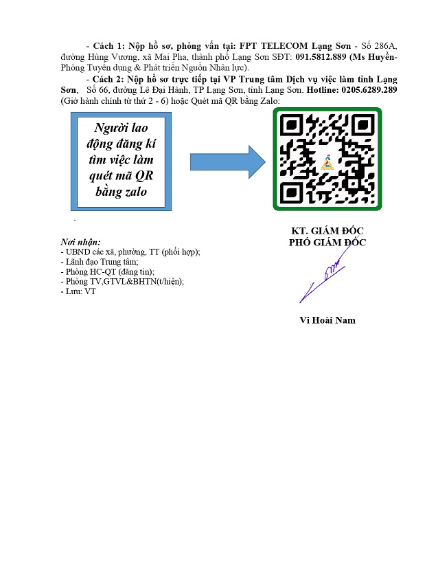 • Zalo Page: Trung tâm dịch vụ việc làm Lạng Sơn