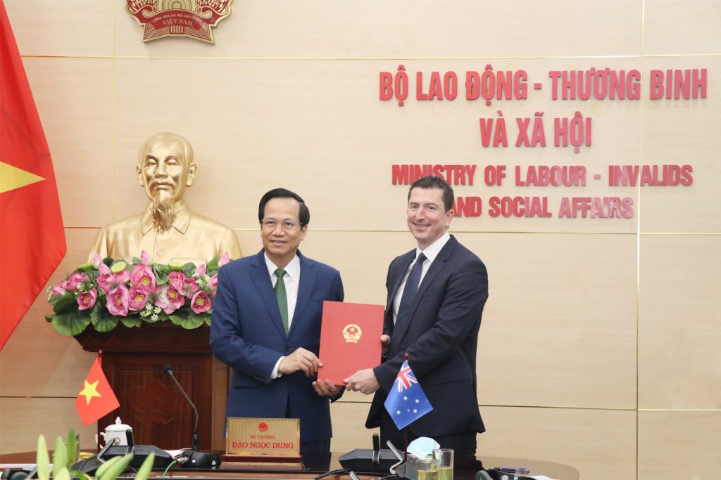 Sáng ngày 28/3, Bộ Lao động – Thương binh và Xã hội (Việt Nam) cùng Bộ Ngoại giao và Thương mại (Australia) tổ chức Lễ ký kết Bản ghi nhớ giữa Chính phủ hai quốc gia về hỗ trợ công dân Việt Nam tham gia Chương trình lao động nông nghiệp tại Australia. Thay mặt Chính phủ hai quốc gia để ký kết, về phía Việt Nam có ông Đào Ngọc Dung, Bộ trưởng Bộ Lao động – Thương binh và Xã hội; về phía Australia có bà Marise Payne, Bộ trưởng Bộ Ngoại giao và Thương mại.