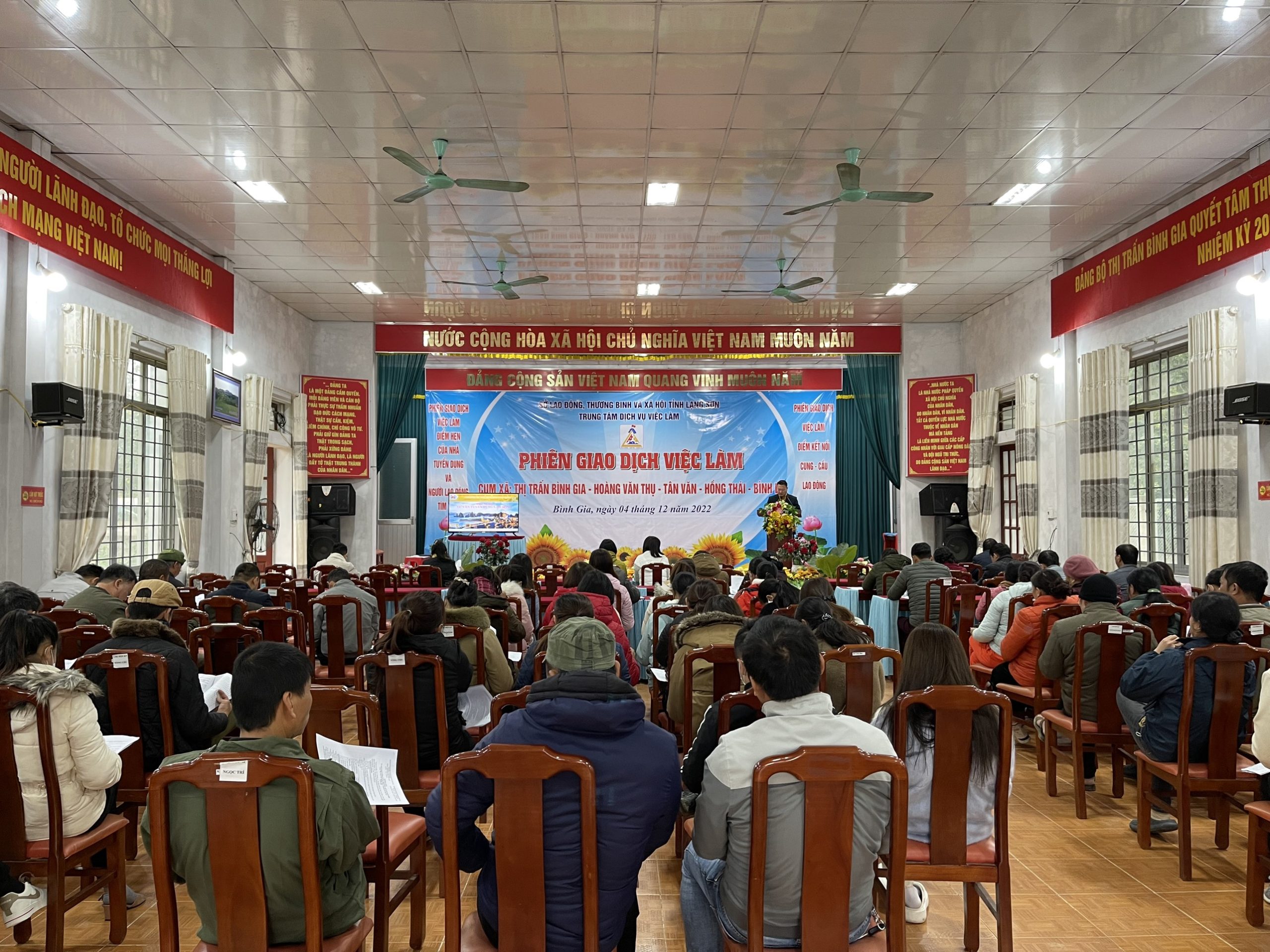 Thực hiện Kế hoạch số 567/KH-TTDVVL, về việc Tổ chức “Phiên GDVL theo cụm xã” trên địa bàn huyện Bình Gia và Văn Quan. Từ ngày 04 đến ngày 10/12/2022, Trung tâm dịch vụ việc làm Lạng Sơn đã phối hợp với UBND huyện Bình Gia và Văn Quan tổ chức các Phiên giao dịch việc làm tại 6 cụm xã trên địa bàn 2 huyện.