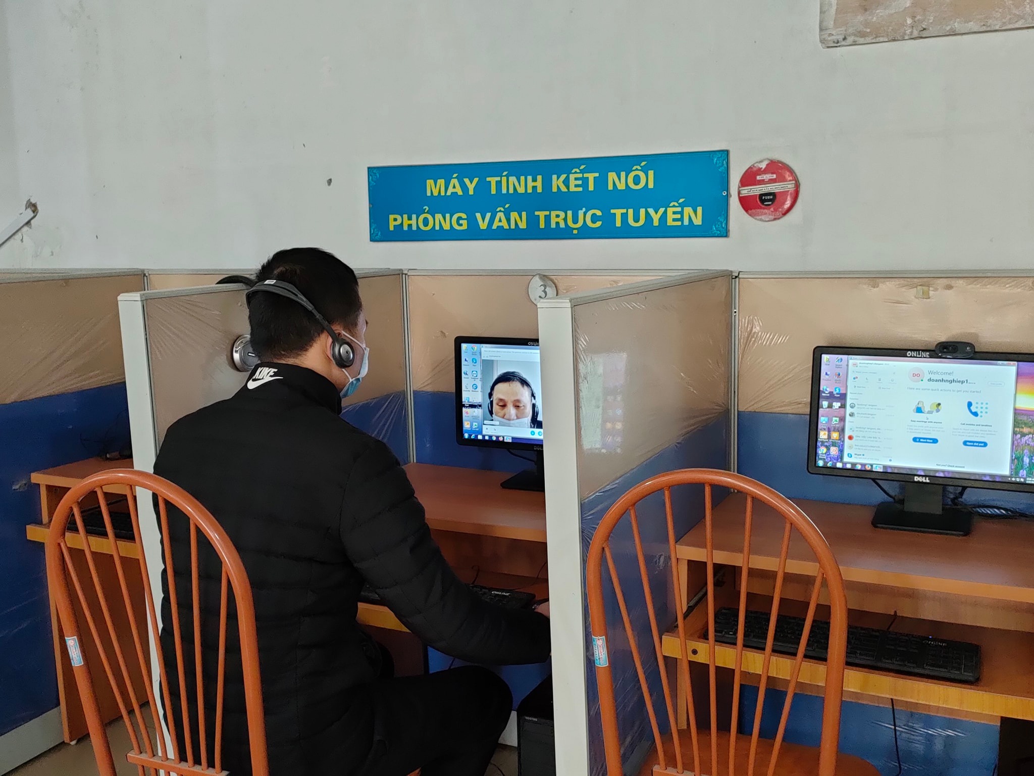 Người lao động phỏng vấn trực tuyến với doanh nghiệp qua máy tính.