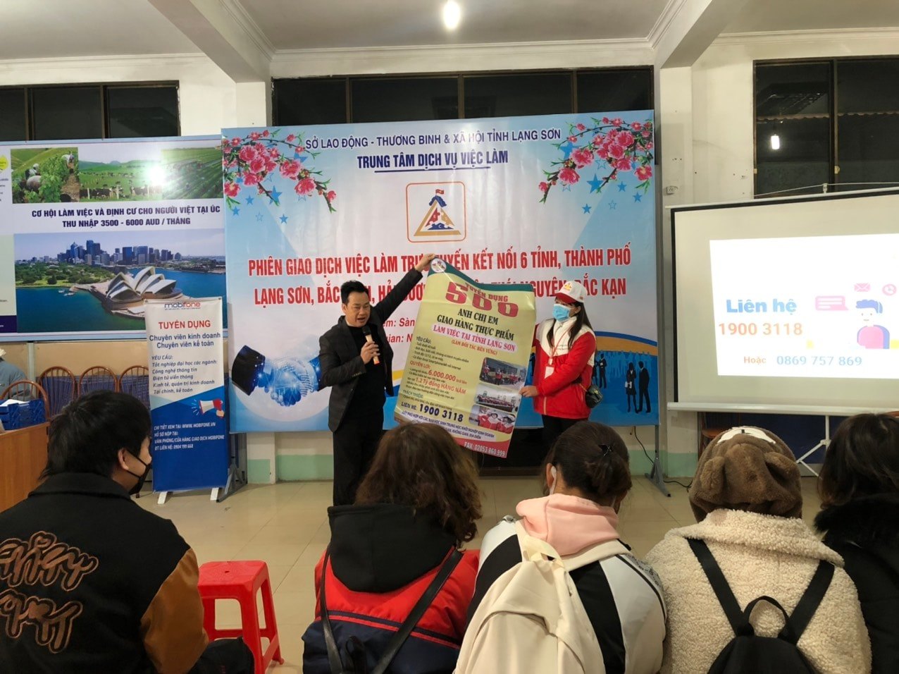 Sáng 19/4/2021, Trung tâm Dịch vụ việc làm Lạng Sơn đã tổ chức Phiên giao dịch việc làm trực tuyến kết nối 6 tỉnh, thành phố: Lạng Sơn, Bắc Giang, Bắc Ninh, Hà Nội, Hải Dương, Thái Nguyên và Bắc Kạn. Nhằm giúp người lao động có nhiều cơ hội việc làm, lao động thất nghiệp sớm quay trở lại thị trường lao động, giúp Doanh nghiệp tuyển dụng được nhiều ứng viên phù hợp, giảm tỉ lệ thất nghiệp. Qua đó, góp phần duy trì ổn định kinh tế của tỉnh và đảm bảo an sinh xã hội và việc làm cho người lao động khi dịch Covid-19 được kiểm soát.