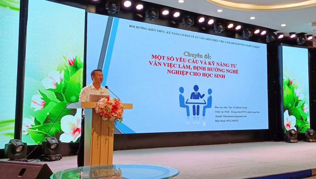 Thực hiện Kế hoạch số 2362/KHSGDĐT ngày 23/7/2024 về nâng cao năng lực tư vấn nghề nghiệp, việc làm phù hợp với đặc thù địa phương cho giáo viên cốt cán các Trường phổ thông dân tộc nội trú, Trường phổ thông dân tộc bán trú, và Trường phổ thông có học sinh bán trú năm 2024. Được sự chỉ đạo phân công của Sở Lao động Thương binh và Xã hội tỉnh Lạng Sơn, ngày 8/8/2024, Trung tâm Dịch vụ việc làm tỉnh Lạng Sơn đã có chương trình lên lớp tập huấn về nâng cao năng lực tư vấn nghề nghiệp, việc làm phù hợp với đặc thù địa phương cho giáo viên cốt cán các Trường PTDTNT, Trường PTDTBT và Trường PT có HSBT.