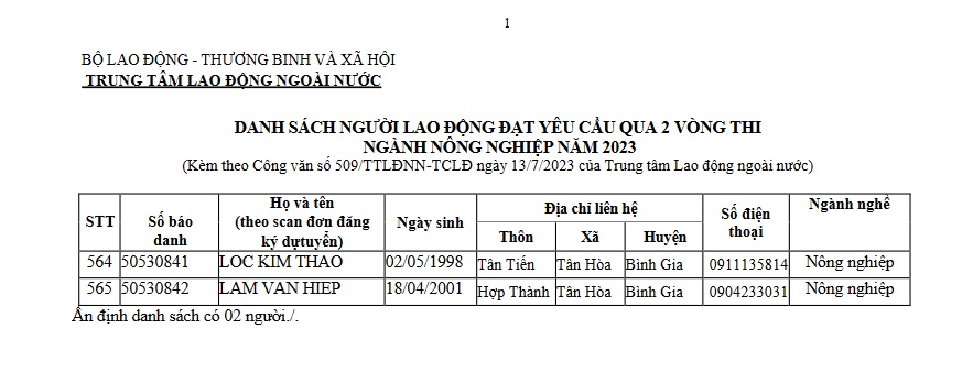 Hoạt động của Trung tâm, TIN TỨC, Xuất Khẩu Lao Động Thông báo Danh sách người lao động đạt yêu cầu và Tổ chức tiếp nhận hồ sơ dự tuyển chương trình EPS ngành nông nghiệp 18 Th7