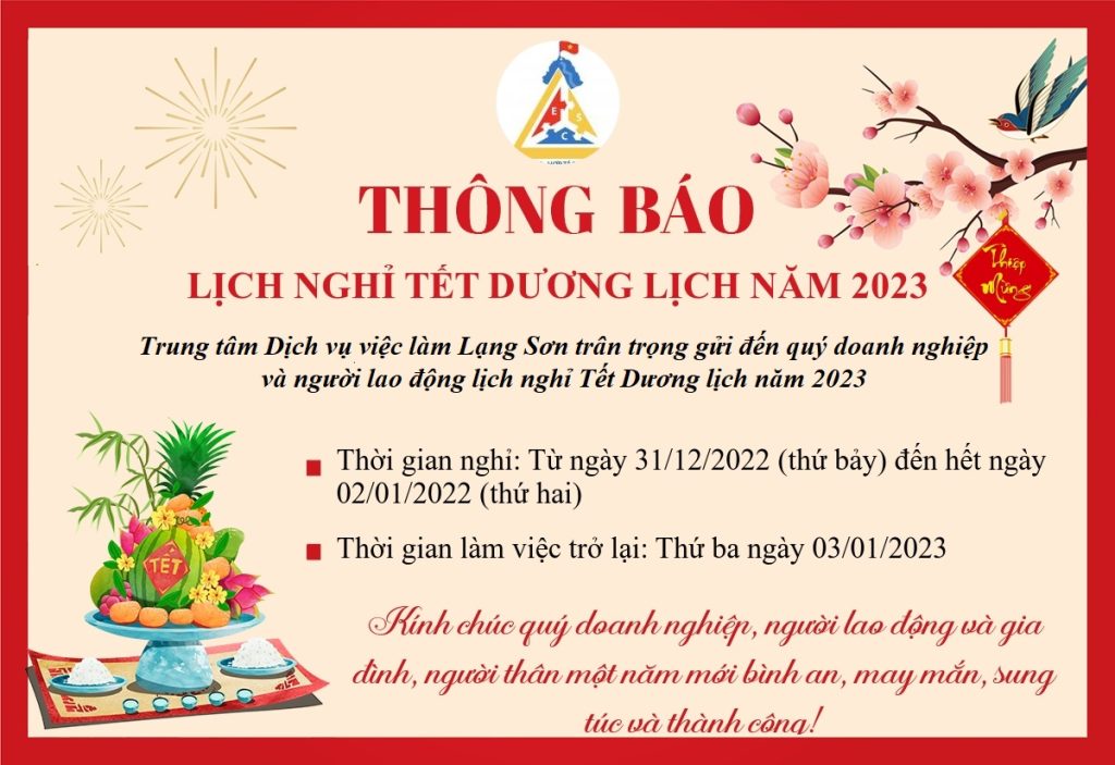 Thông báo lịch nghỉ tết dương lịch năm 2023